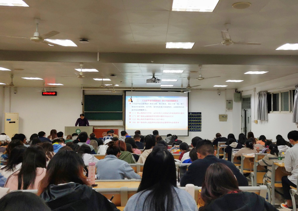 11月12日晚,湖北省委宣讲团成员、学院院长杨金洲教授应邀为我院2020年度入党积极分子和发展对象培训班宣讲《习近平谈治国理政》第三卷。课程以线下课堂讲授的方式进行,本期入党积极分子和发展对象共147人参加。