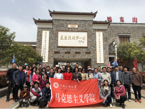 为用好武汉市本地的红色文化资源,深入开展党史学习教育,4月17日,马克思主义学院组织全体教师赴黄陂姚家山新四军第五师司政机关旧址开展党史教育实践活动。
