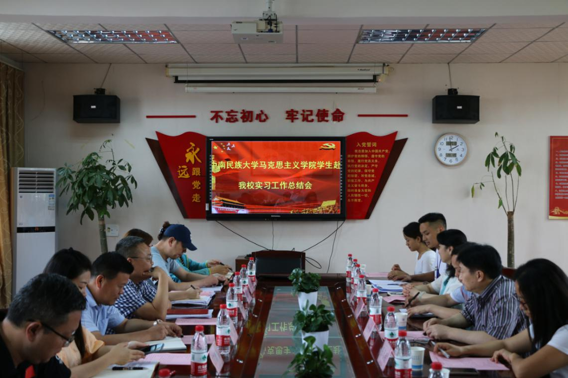 2021年6月30日,必赢国际437官网马克思主义学院学生赴武汉供销商业学校实习工作总结会在武汉供销商业学院二楼会议室召开。武汉市供销商业学校校党委书记王涛、校长沈敏、副校长丁洁梅、办公室主任王林、以及学生实习岗位所在部门的三位主任,我院院长杨金洲、副院长董杰、实习指导老师李春燕以及思政教研部党支部书记张春枝等共同参加本次会议,会议由武汉供销商业学校办公室主任王林主持。
