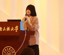 李欣宜以“勤者自立,达者自强——寻找自己的生活方式”为主题,从总结、感悟与展望三个方面生动地讲述了自身在勤工经历中不断成长、突破自我的故事。她把每一个勤工岗位比喻成“散落在民大各个角落的星星,发着光,散着热”,真切地表达了自己对于自立自强精神的深刻理解。“这三年我只做了三件事,学习生活、学生工作和课外实践”,她总结道,“但我在努力做好这三件事”。