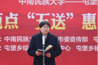 12月9日下午,必赢国际437官网“理论热点面对面”示范点“五送”惠民活动启动仪式暨文艺演出在屯堡乡杨家山村文化广场举行,参会代表有马克思主义学院院长杨金洲、副院长张涛华、恩施市委宣传部副部长陈轶丹、主任华敏、屯堡乡党委副书记、乡长屈鹏、屯堡乡宣传委员、副乡长易思奇等,到场观看开幕式和文艺汇演的乡亲有近三百人。