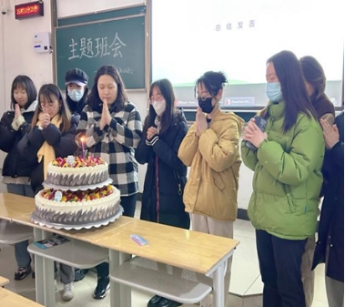 班团会结束后,为开启新学期的新生活,2001班导师金瑶还带领同学们一起为第一季度生日的同学庆祝,发放新学期寄语“红包”。金老师也对思政2001班全体同学送上美好祝福:“在新学期里,在今后的人生道路上,有所判断,有所选择,选择自己不后悔一生的答案,春暖花开,循梦而行。”