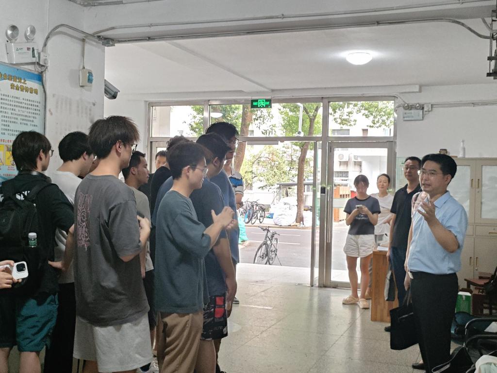 “大家精神状态看起来都很不错”“报考学校、专业是否确定了”“复习进度怎么样”“复习备考过程中遇到哪些困难”“暑期在校生活是否有不便之处”……在南区16栋公寓一楼大厅,学院领导、老师详细询问了同学们的学习和生活状况,对大家不惧高温、勇战酷暑、全身心投入复习备考的决心和毅力表示赞赏,勉励大家要笃定目标、坚定信心,充分利用好暑期复习备考黄金时间,集中时间精力有计划、讲章法、高效率复习备考;要坚持张弛有度,注重劳逸结合,注重锻炼身体,合理安排时间,确保身心健康,为实现理想目标而奋力拼搏。同时,提醒大家“安全”二字要牢记心间,时刻防盗防骗、安全用水用电,确保人身财产安全。同学们对院领导、老师的关心关怀深表感激,表示一定要尽心尽力备考、全力以赴上岸,以不辜负学院领导、老师们的期盼。
