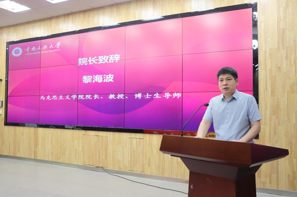 开学典礼在激昂慷慨的国歌声中拉开了序幕。院长黎海波首先致辞。他对新同学加入马克思主义学院大家庭表示了热烈欢迎,并从学科建设、科研工作、人才培养三个方面向新生详细介绍了学院基本情况,引导同学们认识马克思主义,坚定理想信念,增强专业自信,科学制定人生规划,树立远大目标,充实度过大学生活。