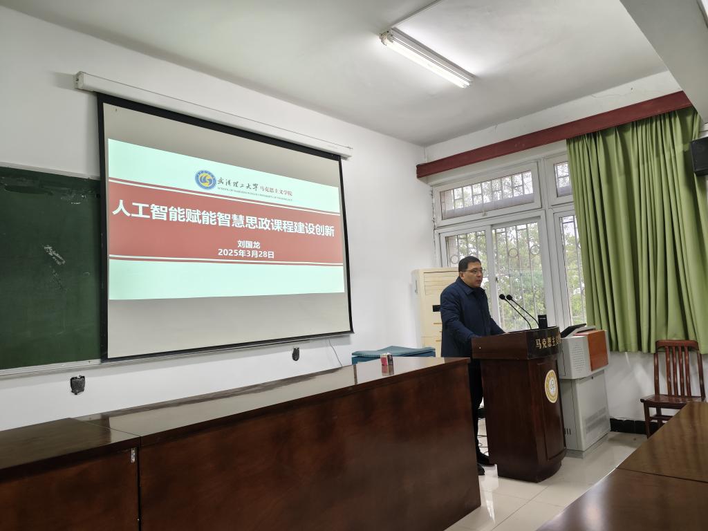为深入实施教育数字化战略行动,探索智慧教学新形态,提升教师将人工智能技术赋能思政课程建设创新能力,3月28日上午,我院举办人工智能赋能智慧思政课程建设创新专题培训会暨青年教师“思享汇”(第三期)活动。武汉理工大学马克思主义学院教授刘国龙应邀作主题报告,全院思政课教师参加学习,会议由副院长滕帅主持。