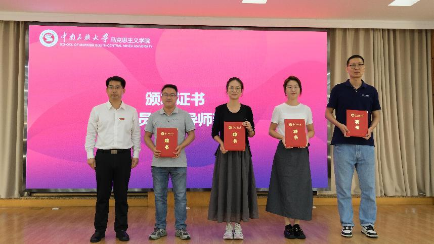 院党委书记汤振华为新任辅导员陈玮龙、高海波,班导师马慧玲、贠婷婷颁发了聘书。新任辅导员、班导师依次发言,欢迎新生加入马院大家庭,鼓励大家坚定理想、扎实学习、知行合一、勇于实践,不负时代、不负青春。