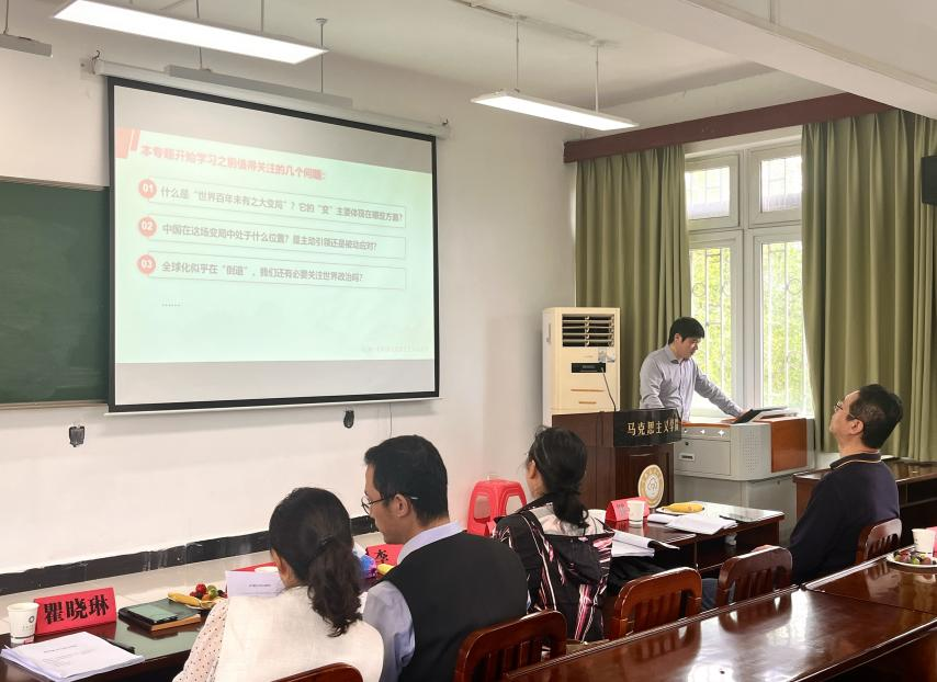 随后,黎海波以“当代世界经济与政治”为主题进行说课,重点阐述了中国在当代世界大变局中的性质定位、发展趋势与应对策略。两位专家结合评审标准与自身经验,围绕教学设计的逻辑结构、主体性以及教学素材的选取等方面进行点评,并提出具体优化建议。
