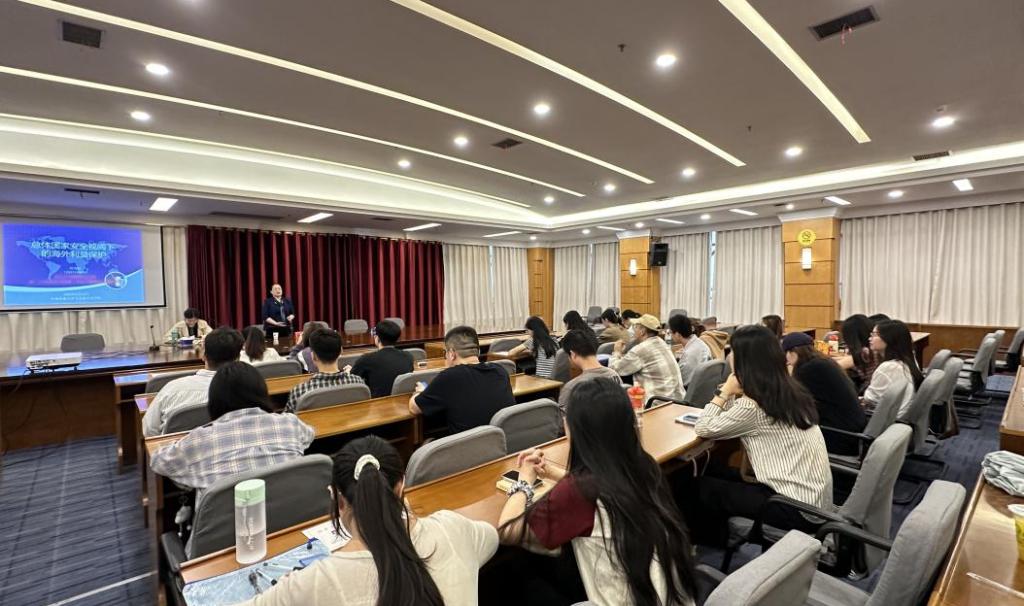 5月23日上午,我院举办领航讲堂第62讲。外交部领事司研究员、中国国际法学会会员、中国国际私法学会理事许育红教授应邀作了题为“总体国家安全观视阈下的海外利益保护”的专题讲座。我院教师代表及2023级、2024级硕士研究生现场聆听讲座。讲座由教师陈文婷主持。