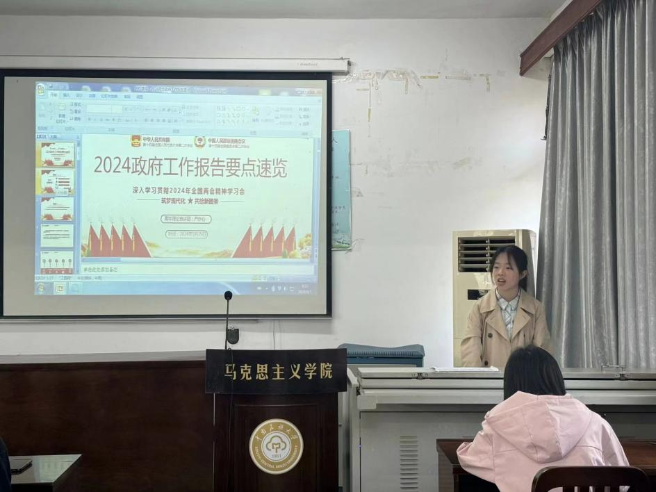 严亦心立足国务院政府工作报告,带领大家一同学习了过去一年国家取得的各项成就和未来一年国家发展总体要求与政府的工作任务。她指出,作为思想政治教育专业学生,我们应该深入学习和领会政府工作报告精神,并将其融入日常学习生活中。