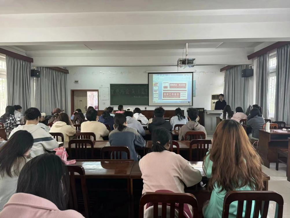 为学习贯彻全国两会精神,深化对青年学生的思想政治引领,4月3日上午,我院在文一楼411教室举行了2023级本科生4月份主题班团会。研究生宣讲团成员梁利红、本科生宣讲团成员严亦心,2023级全体团员及青年代表参加会议。本次班团会由2301班团支书周炳坤、2302级团支书卢昕辰共同主持。