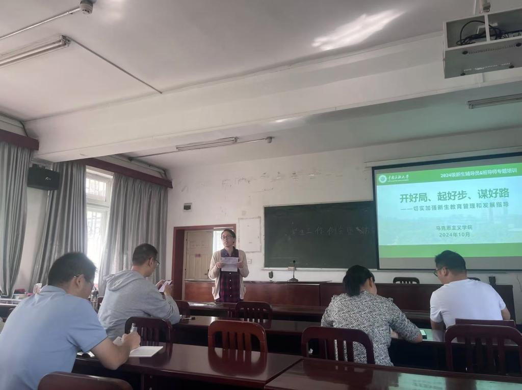 会议伊始,李建青传达了学校党委学工部关于近期加强学生工作的几点提醒和要求:一要加强班导师队伍建设;二要及时掌握学生动态,关注学生心理健康;三要加强反电诈宣传教育等。随后,李建青从传达文件精神、讲解工作实务、提出工作要求三个方面对辅导员、班导师开展培训。她传达了学校党委相关文件精神,强调了提升学生管理服务质量建设的重要性,讲解了如何加强马克思主义宗教观教育、思想政治教育和价值引领、学风建设、日常事务管理和安全教育、党团建设和班级建设、困难学生帮扶、职业规划与就业指导、心理健康和咨询工作等。她指出,辅导员、班导师要葆有“终身学习”的积极态度、积极优化工作方式方法、不断增强集体意识和团队意识等。