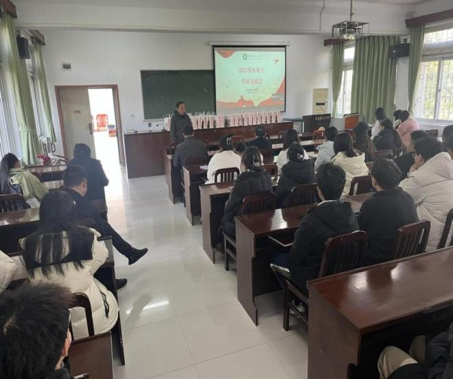 为鼓舞考研学子士气,引导他们纾解备考压力、调整备考心态、坚定考研信心,12月6日,我院召开以“研途相伴,共赴星河”为主题的2025届本科毕业生考前动员会,并为考研学子发放了“爱心大礼包”。院领导李建青、朱磊,毕业年级辅导员、班导师,我院有关教师以及考研学子参加动员会。