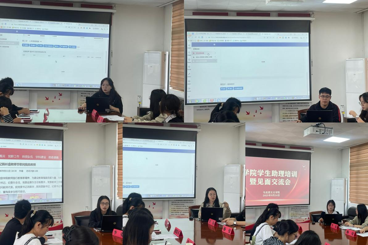 会上,原任学生助理杨曼、陈纯锐、刘嘉雯、李姿、黄月想等同学分别就相关工作流程、各类文稿撰写和会务安排落实等方面作了交流分享。
