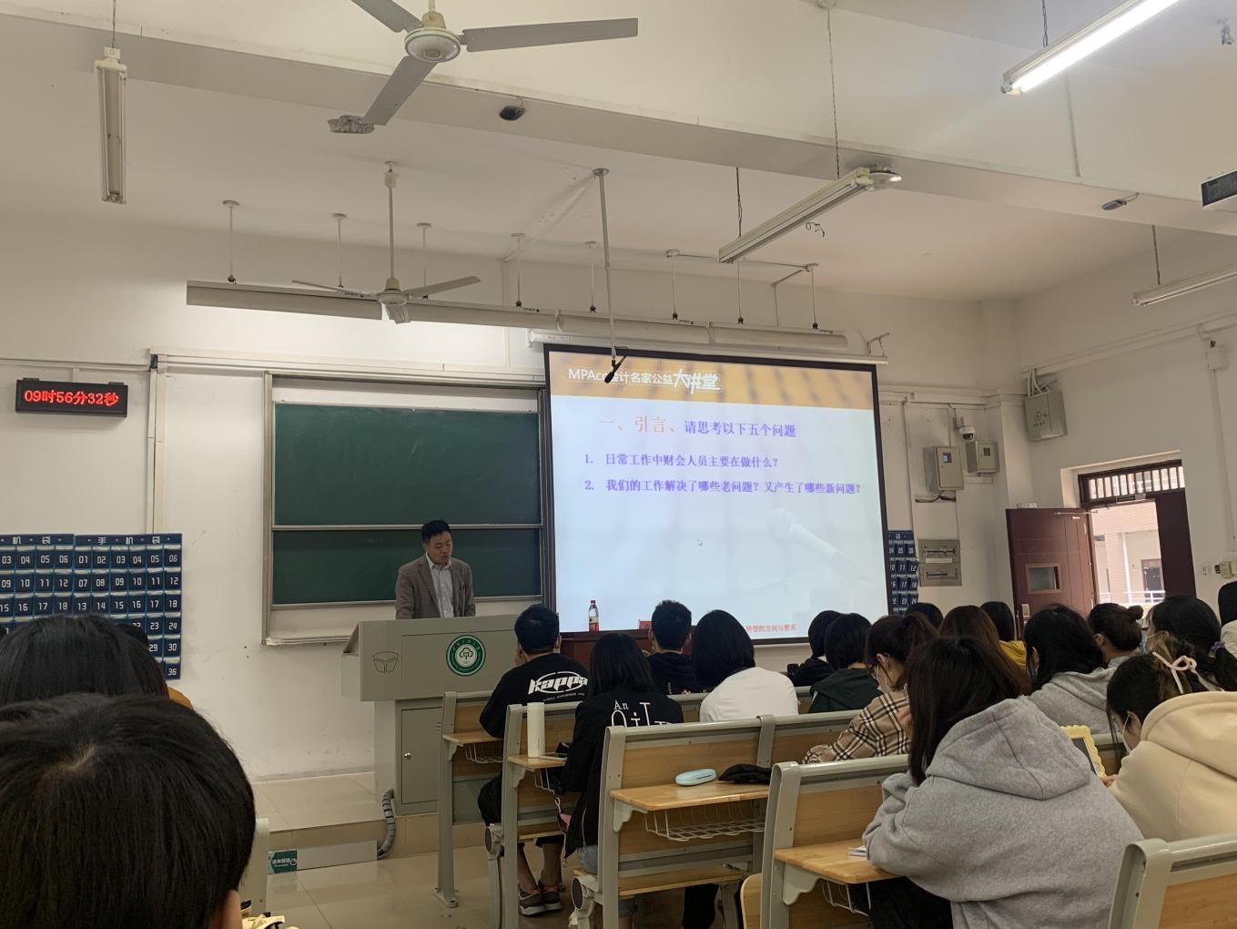2021年11月4日上午,MPAcc会计名家公益大讲堂在必赢国际437官网11号楼207教室开讲。本次大讲堂由中国会计学会、全国会计专业学位研究生教育指导委员会主办,必赢国际437官网管理学院承办。邀请财政部会计名家、全国会计专业学位研究生教育指导委员会委员、中南财经政法大学会计学院院长张敦力教授来我院就“数智时代财务转型的方向与要求”主题与广大师生进行分享和交流。我院MPAcc导师、MPAcc研究生聆听了本次报告。大讲堂由我院副院长周运兰教授主持。