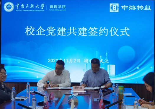 2023年11月2日上午,我院与中海物业武汉分公司“校企合作、党建共建”签约仪式在5号楼222会议室举行。学校招生就业处副处长朱军、学院党委副书记李明亮、副院长周运兰、中海物业武汉分公司总经理郭宝强、副总经理王永红出席签约仪式,中海物业武汉分公司相关职能部门负责人及我院毕业班辅导员卢海涛、王卫参加签约仪式。签约仪式由学院党委副书记李明亮主持。