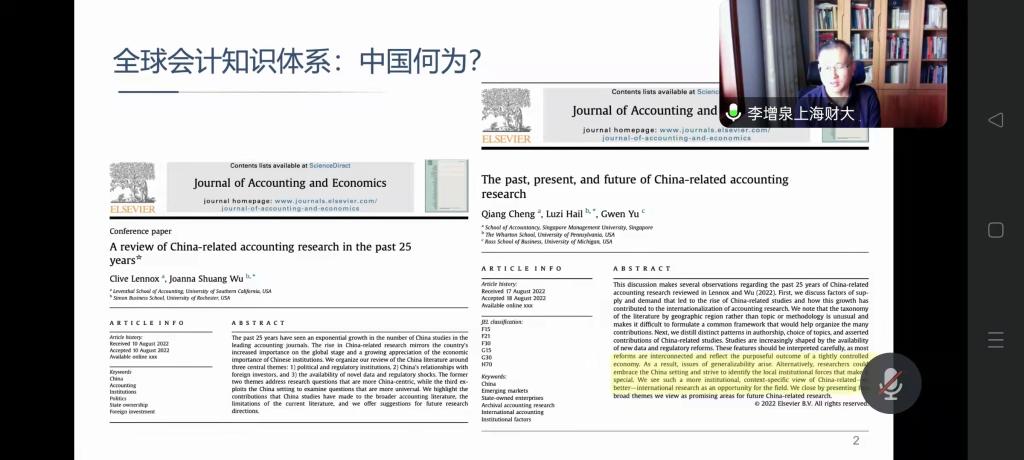 李教授还提到了分析师与嵌入式分析师在会计研究中的重要角色。分析师在会计领域扮演着信息解读和决策支持的关键角色,而嵌入式分析师则更侧重于在特定系统或环境中深入分析和优化会计流程。两者共同促进了会计研究的深入发展和实践应用的优化。在谈及中国会计研究现状时,李教授通过梳理国内外研究文献,指出了当前中国会计研究中的支持型文献和反驳型文献并存的现象。他强调,这两种文献的并存不仅体现了学术研究的多样性和复杂性,也为进一步深入探索中国会计问题提供了丰富的素材和视角。