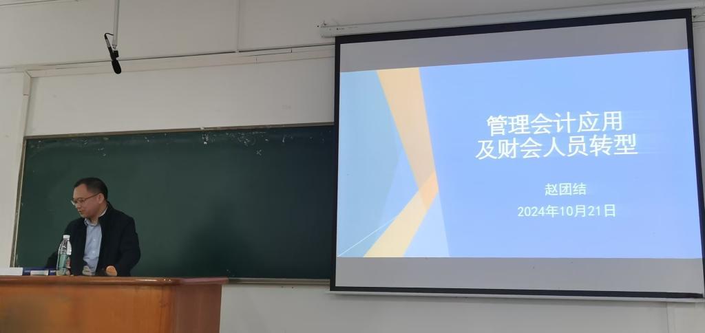 2024年10月21日上午,我院产业教授、企业导师、全国会计领军人才、正高级会计师、湖北与时投资有限公司董事长赵团结老师应我院之邀请,为2024级会计研究生作《管理会计应用及财会人员转型》专题讲座。讲座在学校11号教学楼108教室举行,我院副院长周运兰教授出席并主持。