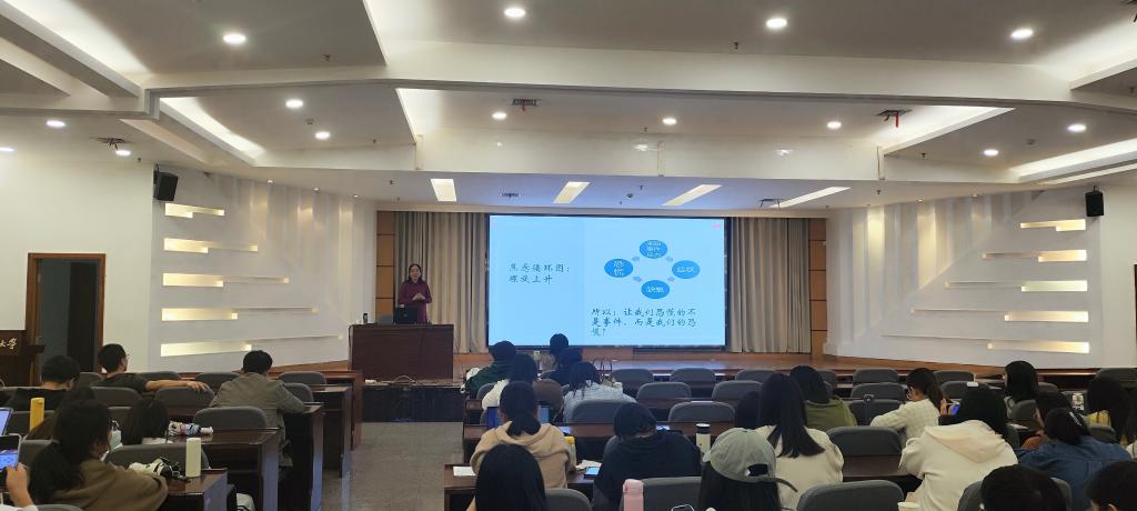 2024年10月26日晚上,必赢国际437官网教育学院教授,注册心理师,硕士研究生导师,校级教学名师,九三学社成员田晓红教授应我院之邀作《心理健康与心理调适》专题讲座。此次讲座响应了习近平总书记在党的二十大报告中关于重视心理健康和精神卫生的号召,强调了心理健康和精神卫生在公共卫生体系中的重要地位,以及作为重大民生问题和突出社会问题的紧迫性。讲座在校学术交流中心润良报告厅举行,来自管理学院研究生100多人参加会议,管理学院副院长周运兰教授主持讲座。
