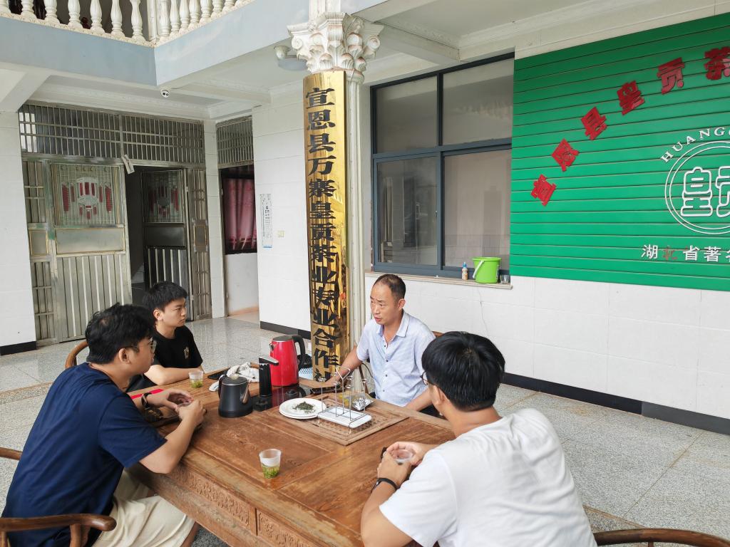 经过二十多分钟的艰难跋涉,我们抵达了茶叶加工厂,也如愿见到了黄总。黄总向我们详细地介绍了万寨乡茶叶产业的发展历程、现状以及未来规划,这些宝贵信息正是我们此次田野调查所急需的。而在我们访谈黄总过程中,那位老伯就已经悄然离去了,我们并不知晓他的姓名,也没有留下照片,但他那热情善良的形象却在我们心中愈发清晰、高大。