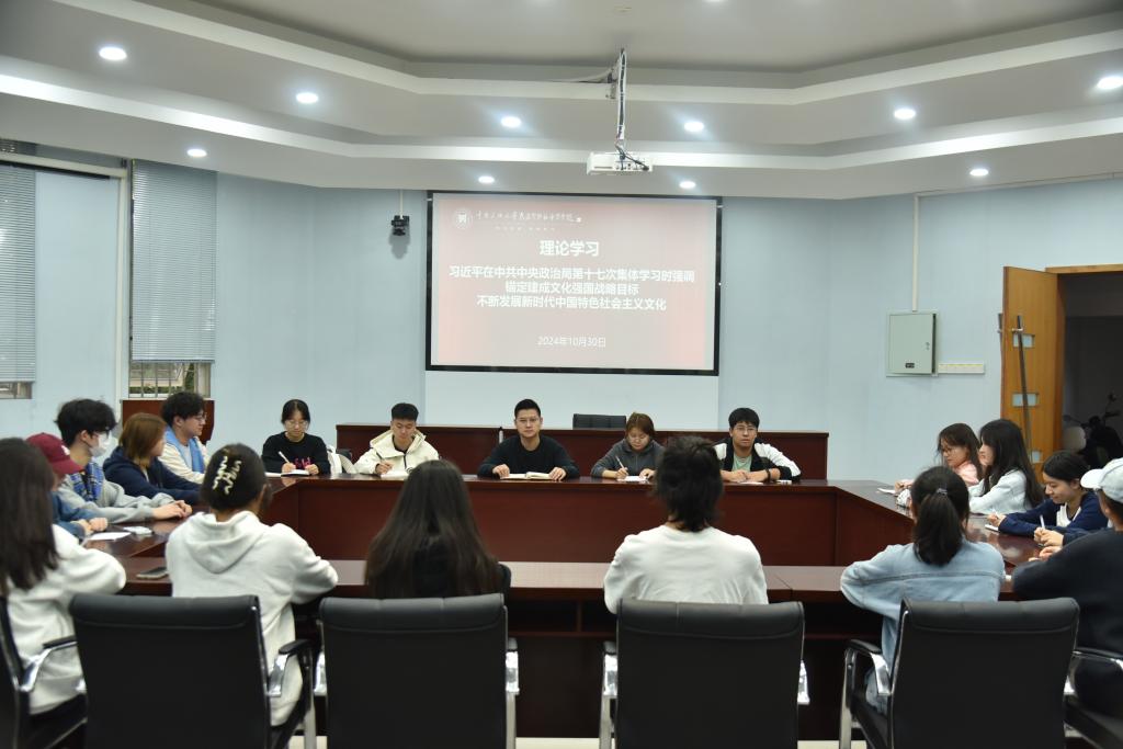 为锚定建成文化强国战略目标,不断发展新时代中国特色社会主义文化,10月30日中午,民族学与社会学学院于八角楼报告厅召开青年骨干理论学习培训会。我院团委老师马博博,主席团成员及学生会各部门负责人参加了此次会议。会议由主席团成员杜吉祥主持。