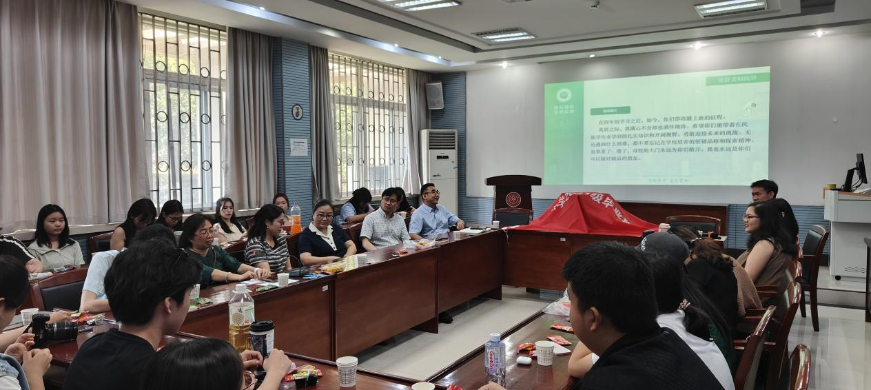 6月5日,学院2021级民族学毕业班茶话会温馨举行,党委书记钱文彬、院长陈祥军、党委副书记王璐璐、辅导员张舒、系主任刘丽娜、教师代表与毕业学子欢聚一堂,共叙师生情谊,畅谈青春梦想,为即将踏上新征程的学子送上真挚祝福。