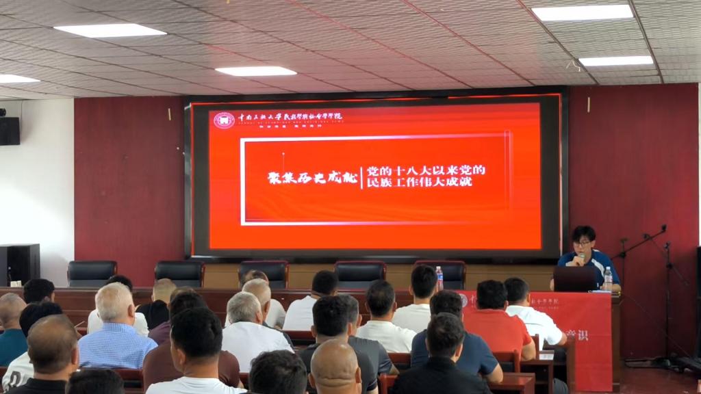 23日,宣讲团在社区党群服务中心三楼作题为《新征程上铸牢中华民族共同体意识的青年行动与思考》专题宣讲,社区部分干部职工、公安干警、居民代表200余人参加宣讲会。董清平围绕新时代十年党的民族工作伟大成就、习近平总书记关于加强和改进民族工作的重要思想,深刻阐述铸牢中华民族共同体意识的理论、历史逻辑和生动实践。宣讲结合大量历史事实和详实数据支撑,讲述各民族交往交流交融伟大实践和新时代各民族同心共筑中国梦的伟大历程,收获了在场人员的一致好评。大家纷纷表示,听完此次宣讲,对什么是“铸牢”,为什么要“铸牢”,如何“铸牢”有了更加深刻的认识,将继续入心入脑学习,积极践行铸牢中华民族共同体意识。