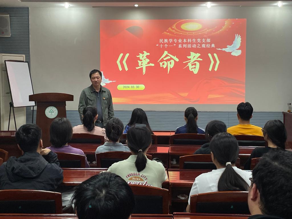 为深入学习贯彻习近平新时代中国特色社会主义思想,进一步厚植学生党员爱党爱国情怀,传承红色革命精神,接受党性教育,3月30日晚,民族学专业本科生党支部在民族学人类学实验室开展“十个一”党建系列活动之观经典活动,组织观看革命历史题材电影《革命者》,支部全体在校党员、发展对象、积极分子代表参加了此次活动。