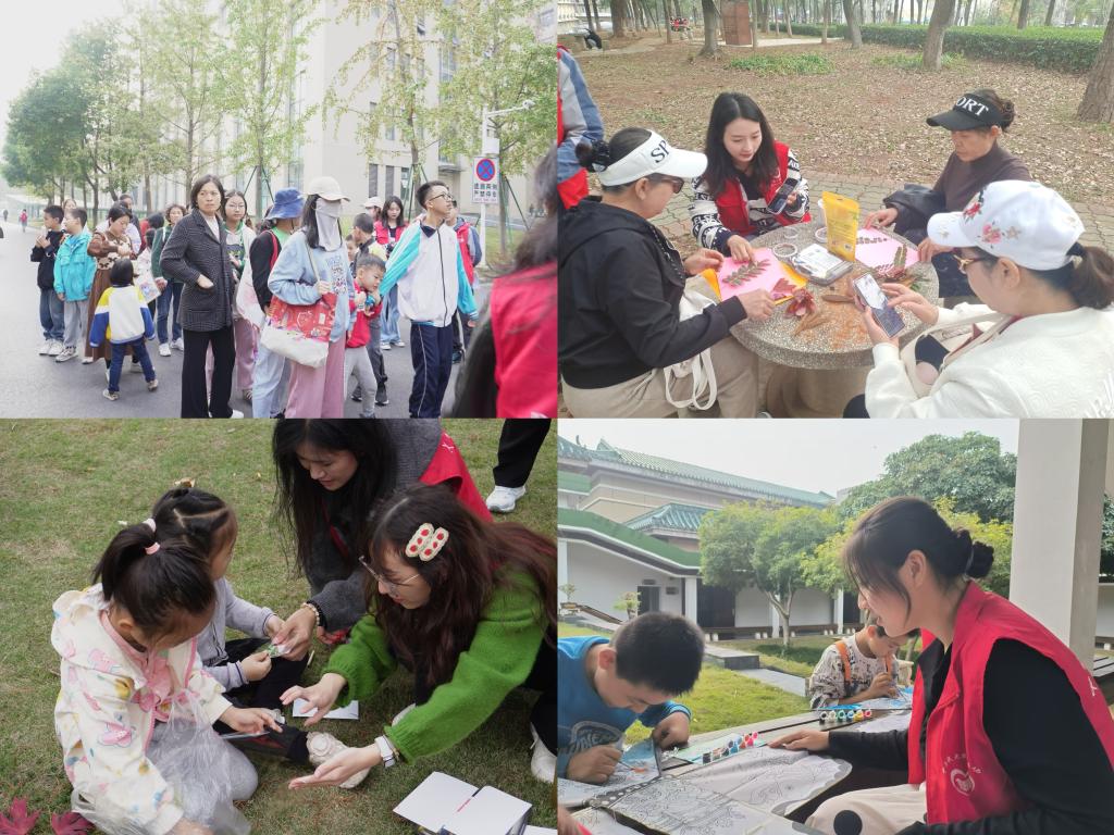 参观完毕,历史学类研究生党支部、民族学类研究生党支部分队带领社区青少年进行植物叶片收集。历史学类研究生党支部带领青少年们进行树叶贴画制作,将秋意融合想象绘于纸面;民族学类研究生党支部带领青少年进行叶片书签制作,将落叶定于纸间。社会学类研究生党支部则带领青少年们进行纸鸢风筝制作,将少年之梦放飞。