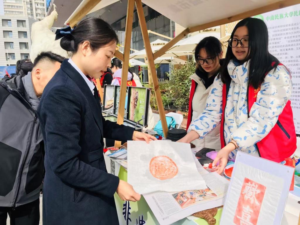 3月5日上午,应洪山区科学技术协会邀请,我馆“西兰卡普”讲解志愿服务队前往银泰创意城门前广场,以“非遗拓印”为亮点,积极参与了“青春‘锋’采耀洪山,多元共治谱新篇”——2025年洪山青年“3·5”学雷锋志愿服务集中行动,共绘文化传承与志愿服务的新篇章。