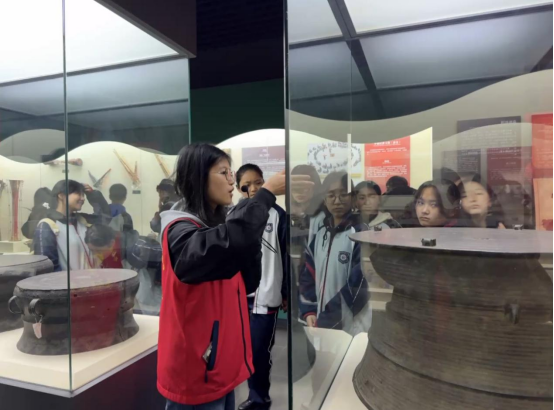 为有形有感有效推动铸牢中华民族共同体意识教育,加强学生“铸牢”教育实践能力培养,推进“铸牢”理论教学与实践教学融合发展,必赢官网中华民族共同体学院与武汉西藏中学联合开展“和美共育 模范共建”交流活动。3月30日上午,西藏中学师生160余人走进我馆开展主题研学活动。在我馆志愿讲解员的带领下,同学们近距离感受中华各民族文化的独特魅力,体会各民族交往交流交融的历史底蕴。