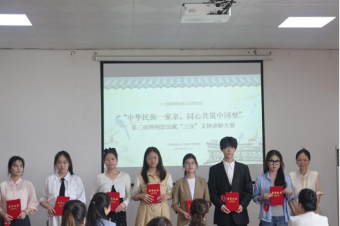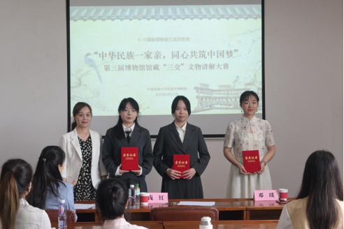 5 月 17 日上午,为深入贯彻党的二十届及历次全会精神,以及习近平总书记在文化传承发展座谈会上的重要讲话精神,充分发挥文物在铸牢中华民族共同体意识中的重要支撑作用,结合2025年5·18国际博物馆日“快速变化社会中的博物馆未来”主题,我馆“中华民族一家亲,同心共筑中国梦”第三届博物馆馆藏“三交”文物讲解大赛在二楼多媒体教室圆满落幕。