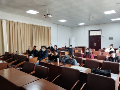 图为:与会党员讨论表决发展党员工作