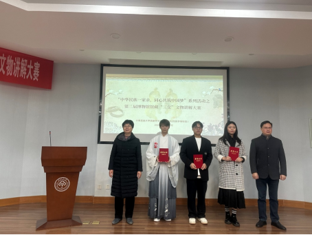 本次大赛面向全校学生,经过前期组织动员及初赛评选,共推选来自民社、法学和文传等7个学院的25位同学进入决赛。选手们以民族学博物馆以及湖北地区各博物馆馆藏的“三交”文物作为讲解对象,有漆器、龙被、绣花彩、曾侯乙编钟、曾侯乙尊盘、云梦睡虎地秦简、虎座鸟架鼓等珍贵文物,紧紧围绕铸牢中华民族共同体意识工作主线,深入挖掘文物内涵,通过向在场师生娓娓道来文物背后的各民族交往交流交融的故事,以及所蕴含的民族精神来宣传中华民族的历史,宣传中华民族共同体理论。