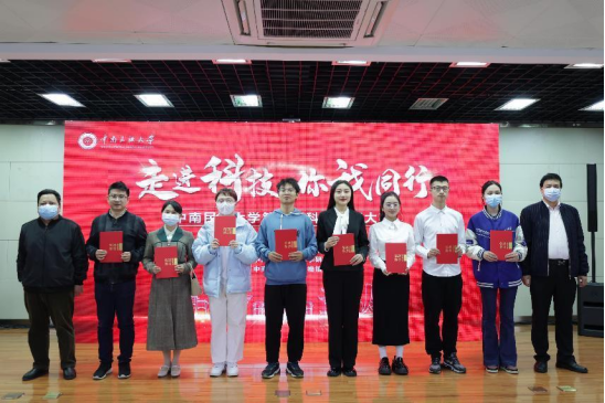洪晓露(右五)与泽让初(右四)同学荣获大赛二等奖
