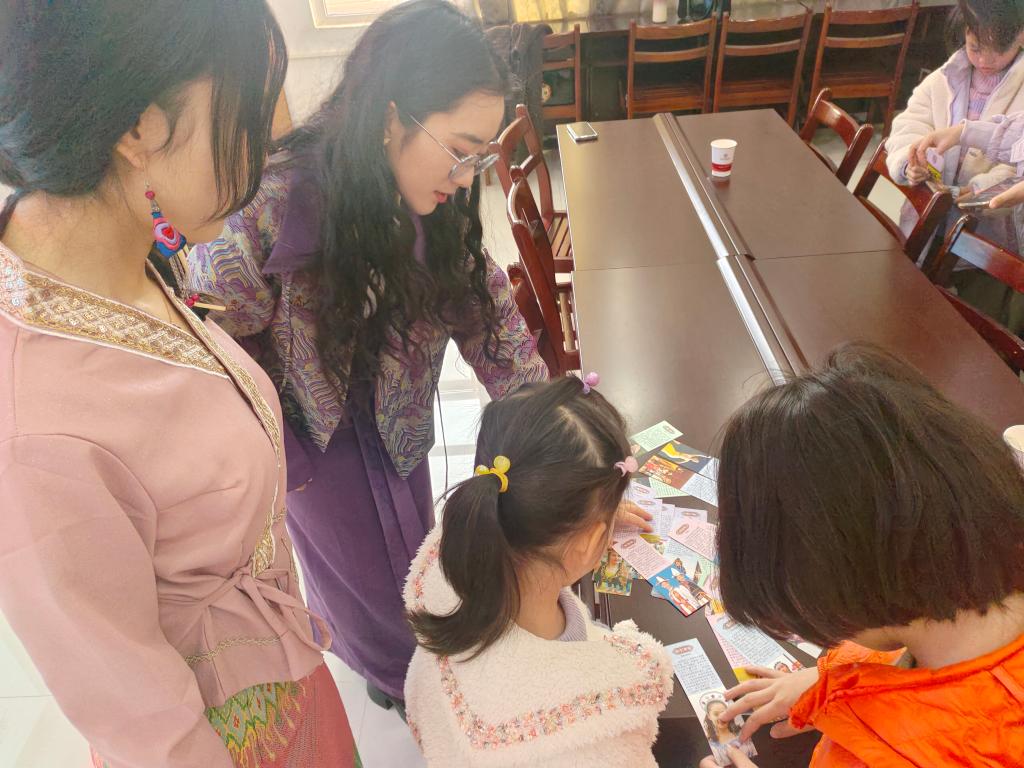 为弘扬铸牢中华民族共同体意识,传播中华民族优秀文化,促进社区里的小朋友们树立民族平等、民族团结等意识,民族学博物馆“西兰卡普”志愿服务队于2023年11月18日下午在金地格林小城社区开展了一次别开生面的民族文化分享会。