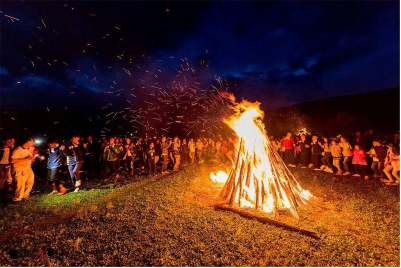 火把节的重头戏之一是篝火晚会。彝族人会在广场或村庄周围搭起大型的篝火堆,然后点燃火把和篝火。伴随着鼓点、歌舞和欢呼声,参与者围绕篝火跳舞、唱歌和庆祝,这是彝族人欢度火把节的高潮之一。此外,火把节期间还有赛马、斗牛、射箭、摔跤、拔河、荡秋千等娱乐活动,并开设贸易集市,为节日增添了更多的欢乐和热闹。同时,火把节也是彝族人进行祭祀祖先和神灵的重要时刻。他们会前往家族的祖坟或祖居地,献上饭食、水果和酒,并点燃香火,祈求祖先保佑家庭和民族的繁荣。