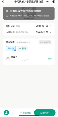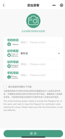 5.如实填写游客信息,“保存”后,自由选择时段,点击“立即预约”即可!