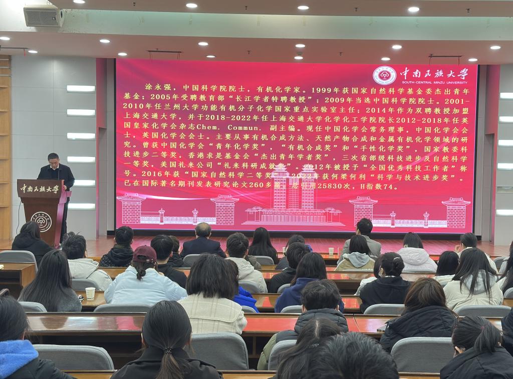 3月10日上午,中国科学院院士、著名有机化学家涂永强教授应邀来校讲学,在学术交流中心作题为《C-C键重排反应及其多环萜类天然产物的合成》的学术报告。校党委副书记、校长刘义出席并致辞,学校师生200余人参加。报告会由刘吉开教授主持。