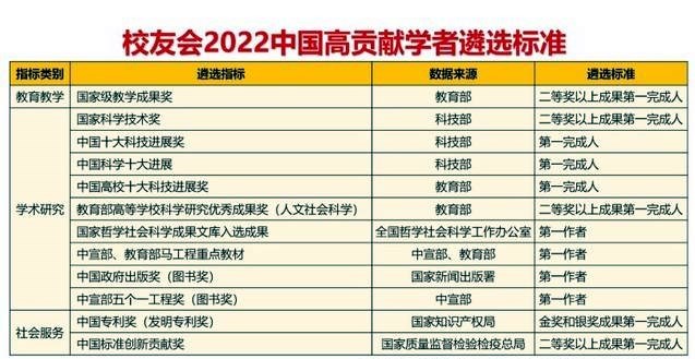 据悉,为坚决贯彻落实国家《深化新时代教育评价改革总体方案》等文件政策要求,今年1月,艾瑞深研究院双一流建设评价课题组在多年开展“中国杰出人文社会科学家”遴选的基础上,在国内首次提出“中国高贡献学者”指标,引入校友会2022中国大学排名评价指标体系。“中国高贡献学者”遴选突出评价中国高校学者的教育教学水平、学术研究水平、创新质量与实际社会贡献,为科学客观系统评价研究中国高校学者的表现提供依据。