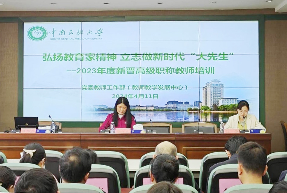 4月11日下午,学校在学术交流中心举办“弘扬教育家精神 立志做新时代‘大先生’”2023年度新晋高级职称教师培训会。40余位新晋高级职称教师参加了培训,校党委常委、副校长李红燕出席会议。培训会由党委教师工作部部长江莹主持。