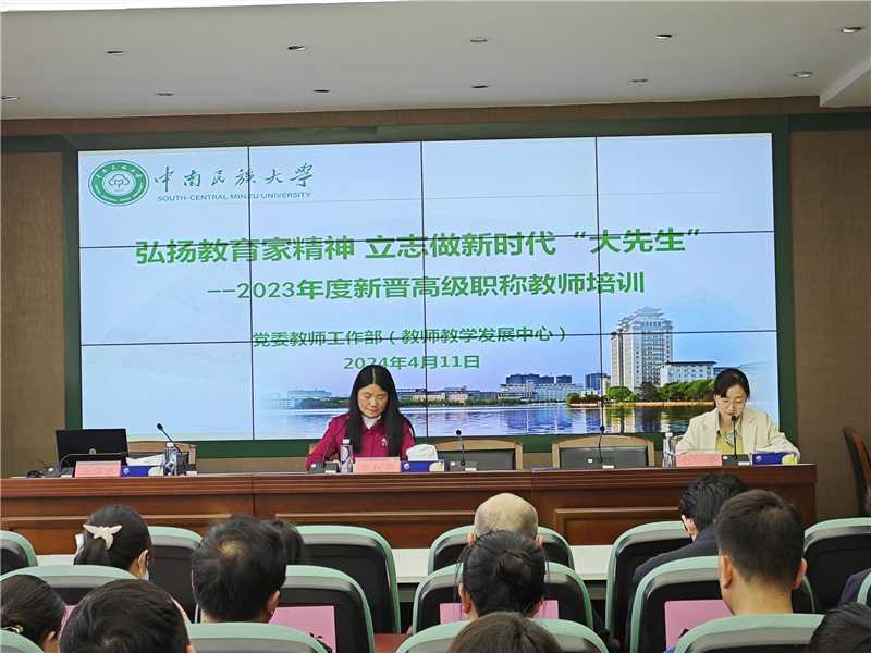 4月11日下午,学校在学术交流中心举办“弘扬教育家精神 立志做新时代‘大先生’”2023年度新晋高级职称教师培训会。40余位新晋高级职称教师参加了培训,校党委常委、副校长李红燕出席会议。培训会由党委教师工作部部长江莹主持。