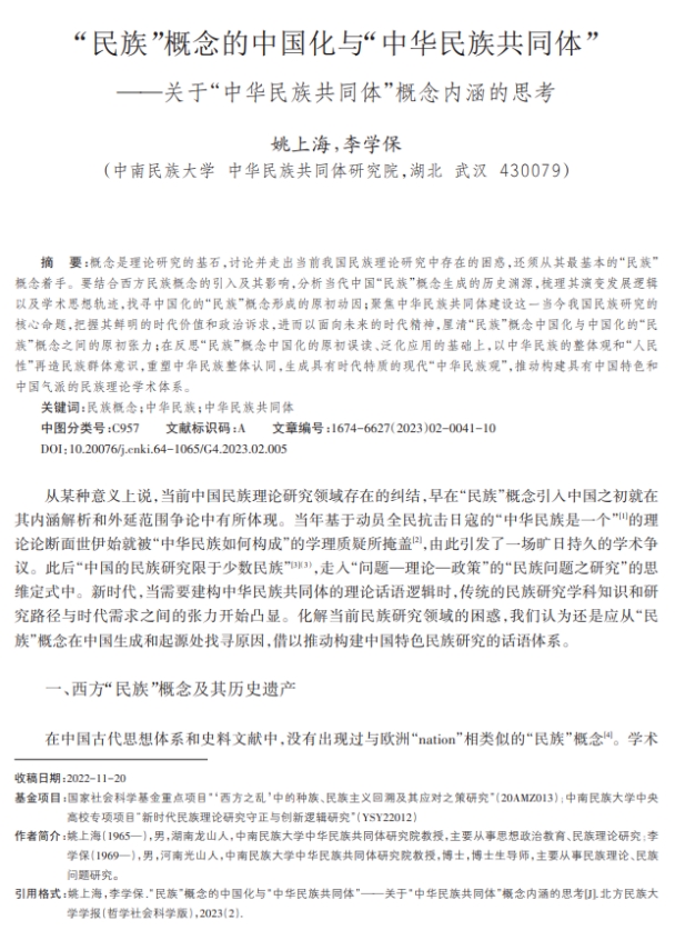 “民族”概念的中国化与“中华民族共同体”——关于“中华民族共同体”概念内涵的思考 |