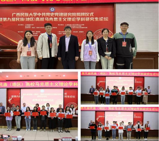 为推动民族(地区)高校马克思主义理论学科青年学生学术交流,助力学科人才培养。2023年5月12日—13日,由民族(地区)高校马克思主义学院院长联席会主办,广西民族大学承办的“第九届民族(地区)高校马克思主义理论学科研究生论坛”在相思湖畔以线下方式举行,经初审、盲审、专家评审三轮激烈竞争,我院共有2名同学荣获一等奖,3名同学荣获二等奖,3名同学荣获三等奖,并获优秀奖若干,方智祺、刘静、韩潇潇、张千傲同学作为学生代表应邀参会并发言。副院长黎海波、兼职辅导员彭春兰带队参会。