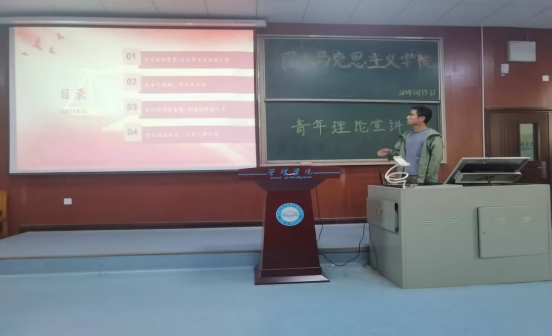 祝宇豪向在场的同学们分享了自身在学习马克思主义理论知识过程中的心得体会以及学习方法。本场宣讲活动,理论与实际结合紧密,指向性、针对性、实用性强,现场一次次响起同学们的热烈掌声。