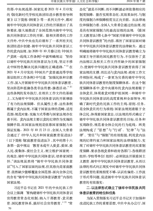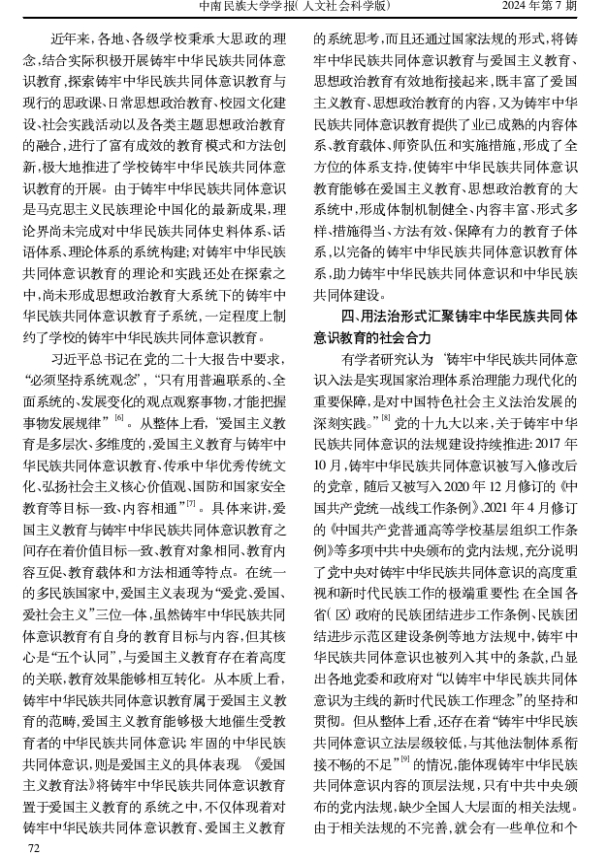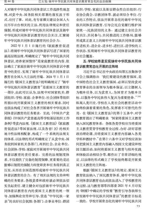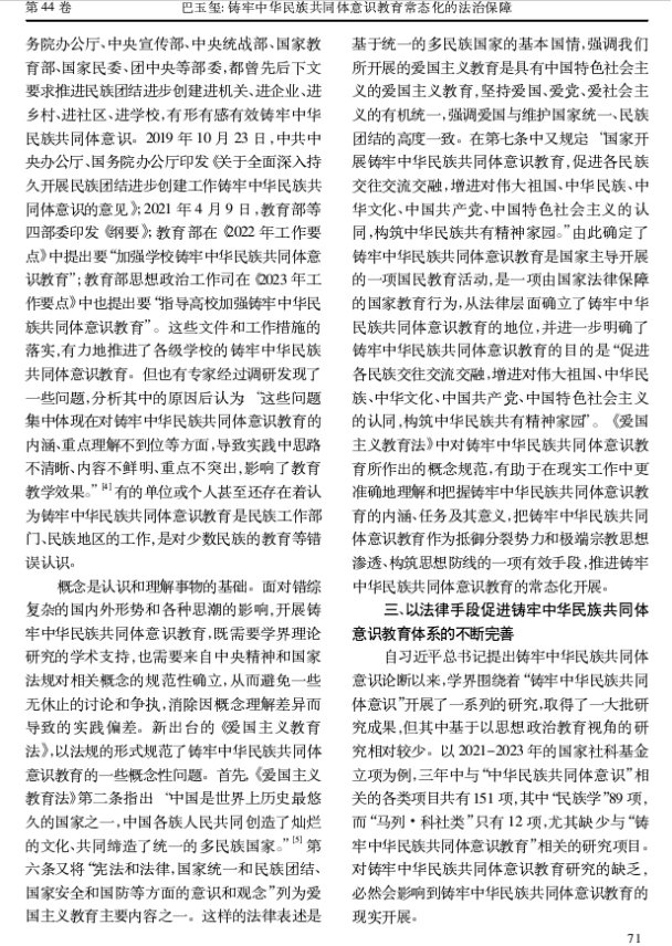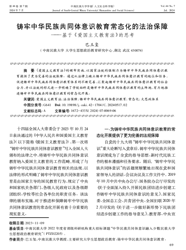 铸牢中华民族共同体意识教育常态化的法治保障——基于《爱国主义教育法》的思考 |