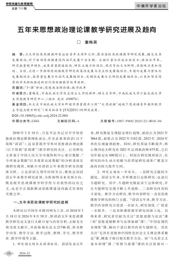 学校党建与思想教育,CSSCI扩展版,2024年第22期 |