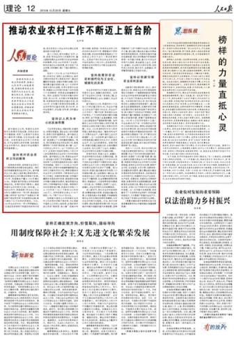 人民日报人民要论:推动农业农村工作不断迈上新台阶