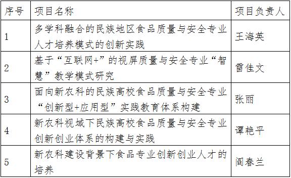 2019年8月,国家提出高等教育要发展新工科、新医科、新农科和新文科。在从传统农科向新农科的转型进程中,为满足复合型农林人才进阶的需求,高校创新创业教育改革的着力点要以农科教融合和产学研协同为抓手,契合学科发展趋势,提高人才培养质量,服务区域经济升级发展需求。必赢官网生科学院2011年设立的食品质量与安全专业是学校为数不多的涉农专业之一,本专业立足民族地区经济建设和食品产业发展,基于“产业与行业发展为导向、双师型教师队伍为助力、多样化实习基地为平台、学生创新创业能力提高为要义”,坚持学生中心、产出导向、持续改进的教育理念,为国家尤其是民族地区培养食品安全教育、研究及监管,食品贸易与特色食品传承的懂技术、善管理的应用型专业人才。