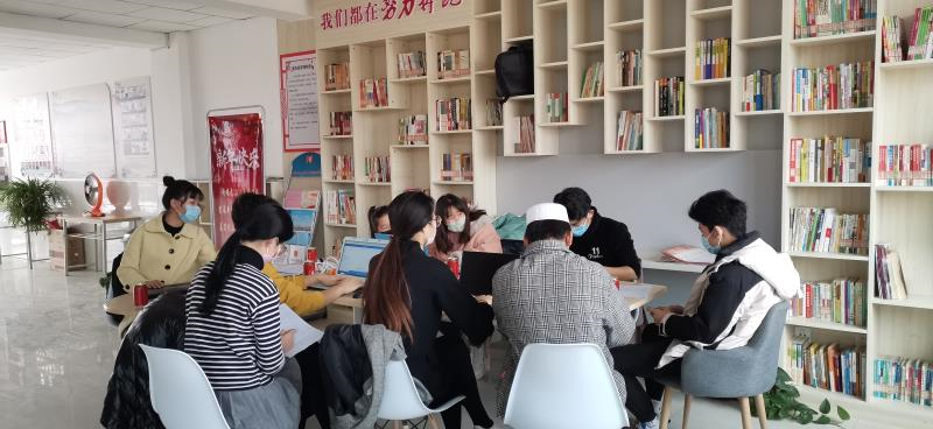 王嫒(后排右二)与其他志愿者进行相关数据统计