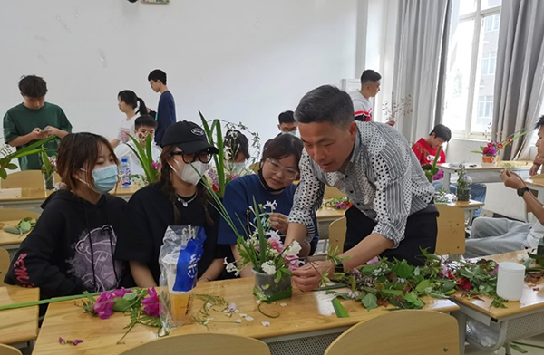 “要选择合适的花材,注重色彩搭配和造型,才能营造出高雅深远的意境!” “作品要创新,弘扬时代主旋律,迸发正能量!”时值清明,莺飞草长,花木飘香,提高学生美学素养和培育美好心灵,实现“五育并举”,生科类2107班在班导师龚汉雨的带领下举行了插花艺术实践活动。学生们3人一组,每组制作了2-3个作品,再进行展示、赏析和讲解。“红花和紫花、粉红色花材搭配,这样就和谐、不突兀。” “按照中华传统美学思想,可以适当利用线形柔枝飘逸的动感,形成深远的意境。”龚老师从理论和实践两方面进行了指导,同学们相互点评帮助,都做出了满意的插花作品。本次实践活动把生物学和艺术美学知识进行了有机融合,促使学生努力做到文、理、艺、美兼修,科技和人文知识融会贯通和互促共进,指导学生陶冶情操,培养懂生活、爱生活、会生活的情趣,促进学生综合素质全面发展。